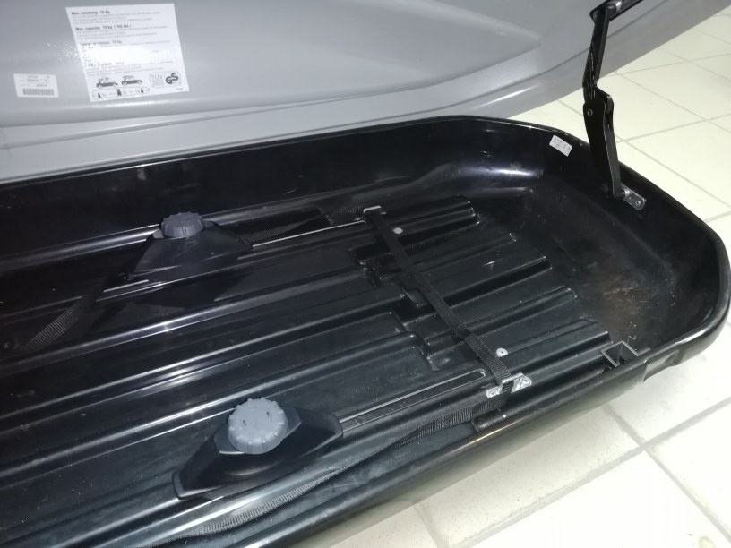 Dozvoljena nosivost 75kg. Aerodinamična. 2 ključa. Zaključavanje u 3 točke jednim okretom ključa. Opremljena je sistemom klješta kojima se pričvršćuje za krovne nosače jednostvanim zavrtanjem kotačića u prostoru kutije. 2 gurtne za osiguravanje tereta. Knjižica - uputstvo za upotrebu.