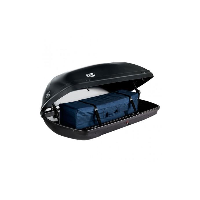 Krovna kutija CRUZ 340N dinamičnog oblika i zapremine 340 litara, sjajne crne boje i nosivosti 75 kg. Za montiranje nije potreban nikakav alat i montaža je vrlo jednostavna. Kutija ima bočno otvaranje s desne strane kako ne bi morali stajati na cesti dok ju otvarate. Centralno zaključavanje onemogućava otvaranje i osigurava Vaš teret od krađe.