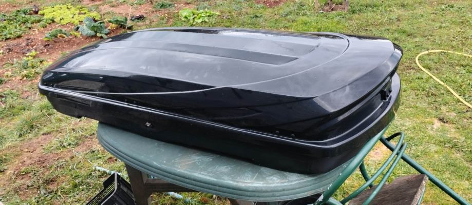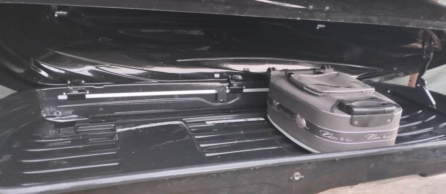 Prodajem veliku krovnu kutiju za auto (DxŠxV je 195x80x38cm oko 500L), u solidnom stanju, malo korištena, aerodinamična, metalik tamno plava, skoro crna... nažalost ključ je zagubljen (ali ima broj ključa na bravi pa se može naručiti ili još bolje promijeniti bravice), ima brave na sredini sa obje strane tako da se može otvarati sa dvije strane, brava sa strane suvozača je izbušena i može se koristiti sa odvijačem za prvu ruku (bravice se nadju po desetak eura i ne bi trebao biti problem zamijeniti ih) cijena dogovor, ne zvati prijepodne