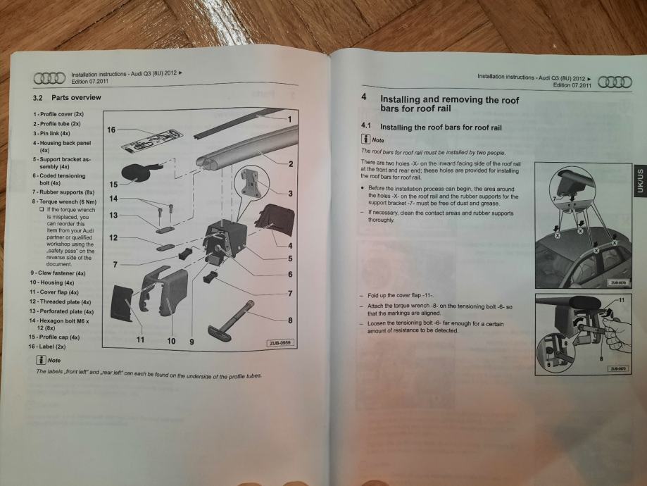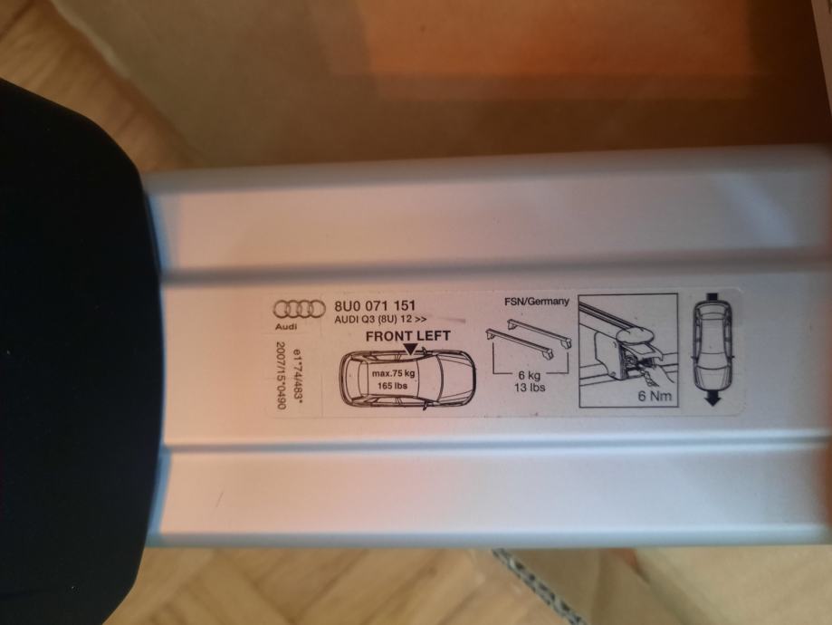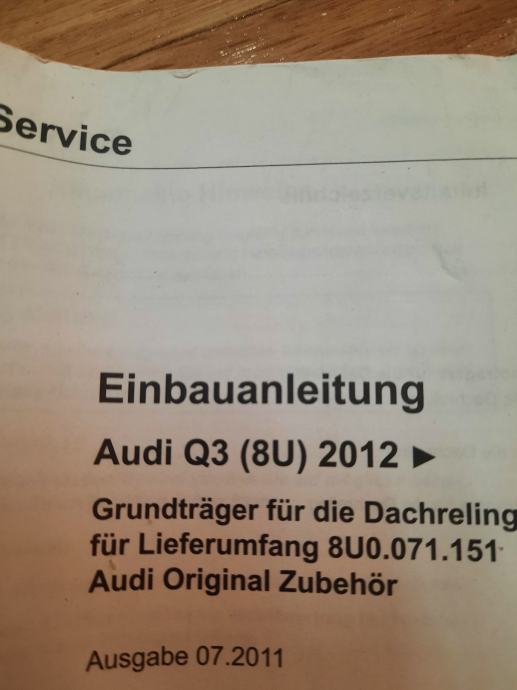 NOVO, nekoristeno, kutija, papiri za montazu, audi kljuc za montazu na 6Nm, za model sa uzduznim lajsnama od 2012.god.