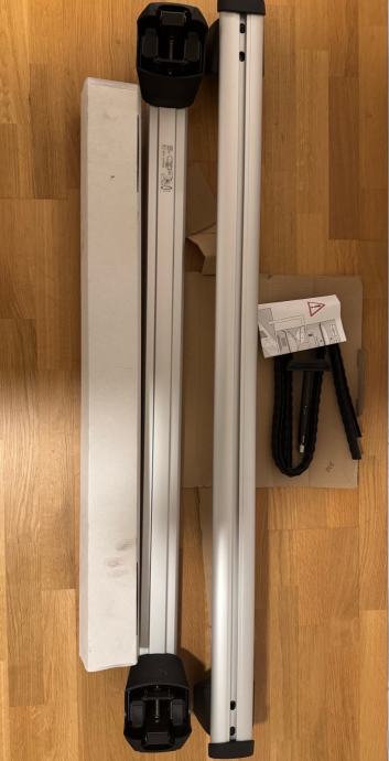 Nosači su izrađeni od aluminijskih profila koji zbog aerodinamike smanjuju utjecaj vjetra. Nosivost do 100 kg .(novo,nekorišteno).