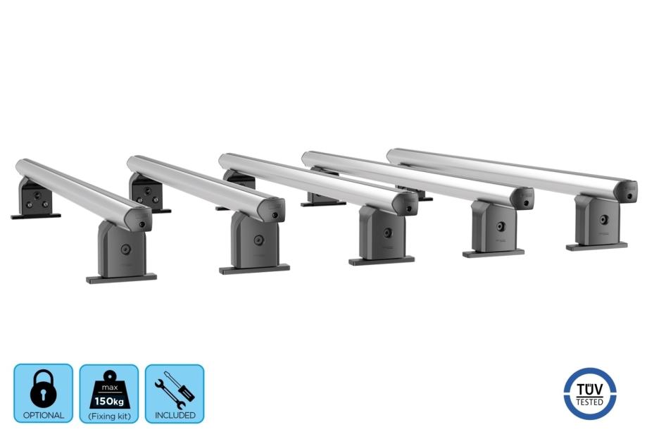 Komplet krovnih nosača od 5 poprečnih šipki ,Fixing držačima i čvrstim prilagodljivim graničnicima.