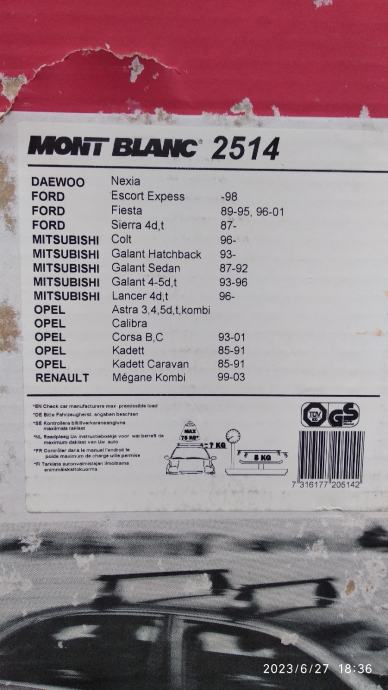 Krovni nosači za automobile s dva uzdužna utora-šine na krovu poput Opela, Renault, Ford i sl., modeli nabrojani na slici