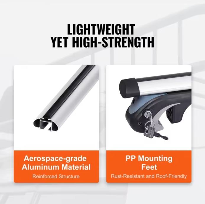 Prodajem krovne nosače Vevor. Dužina šine je 135cm. Novo nikada korišteno. Montaža je za povišene vodilice na vozilima. Aluminijske, lagane, nosivost do 90kg. Integrirani protuprovalni sistem s kljucem.