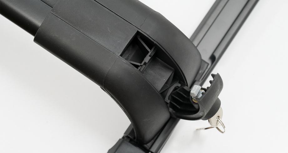 Sustav poprečnih šipki opremljen namjenskim priborom za ugradnju i sustavom protiv krađe s ključem.