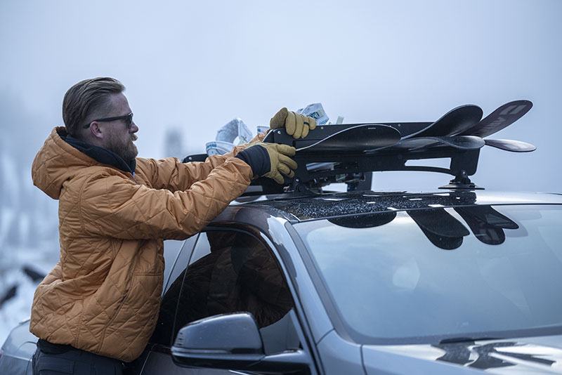 Kad narančasti indikator nestane, vakuum je dovoljno jako uhvatio. Otvorite krila nosača, umetnite svoje skije ili boardove, spustite krilo i spremni ste za polazak.