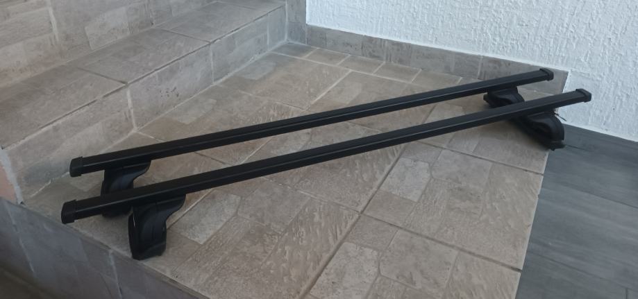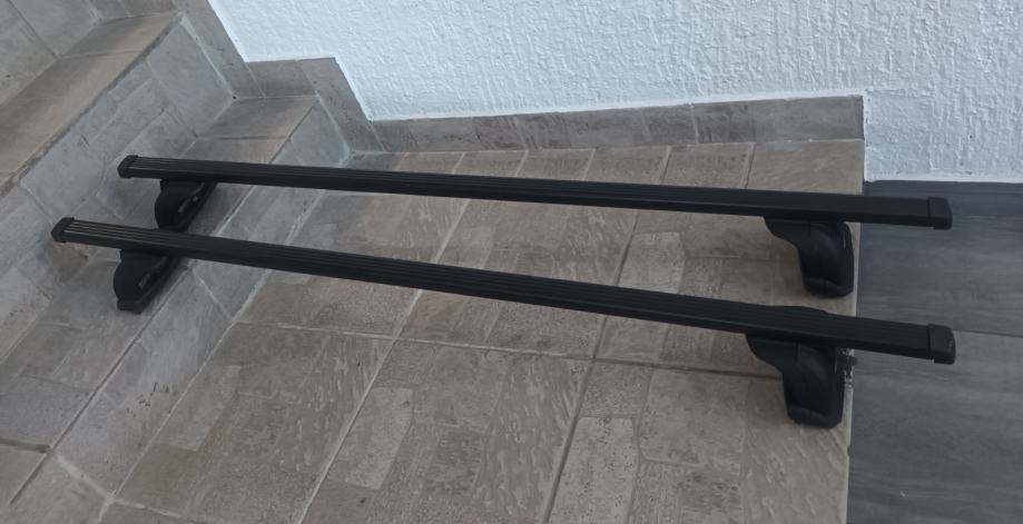 Krovni nosači sa slika malo korišteni stanje odlično vidljivo na slikama. Nosivost 100 kg, dužina šipki 120 cm, dva ključa.