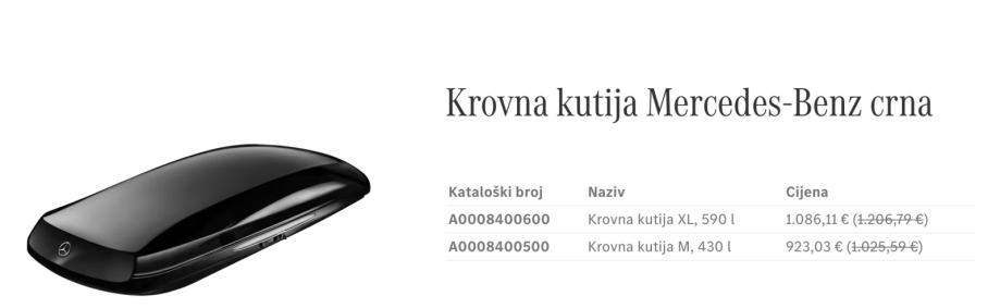 Originalne Mercedes Benz krovne nosače s pripadajućom krovnom kutijom 450 Genuine.