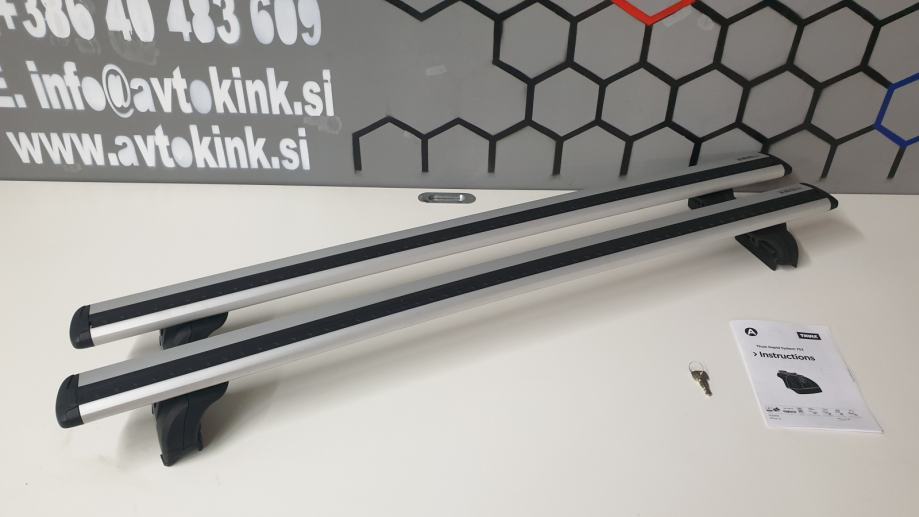 Komplet je sastavljen iz rabljenog kita za pričvršćivanje 183136, rabljenih nogu 751 i novih šipka Wingbar Evo u srebrnoj boji.