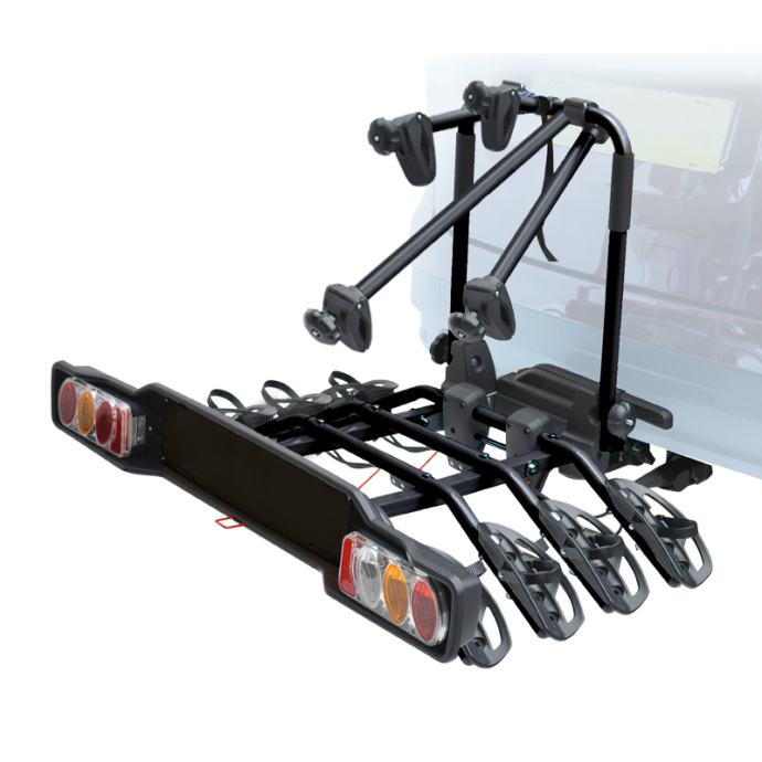 Nosilec za kolesa omogoča enostavno montažo in odstranitev. Namenjen je prevozu 4 koles s priključkom na kljuko avtomobila. Nagib flip-down sistem omogoča dostop do prtljažnega prostora. Vključene so roke za pritrditev koles ter trak za okvir za dodatno varovanje. Nosilec vsebuje okvir za registrsko tablico, varnostne luči in 13 pinski priključek.