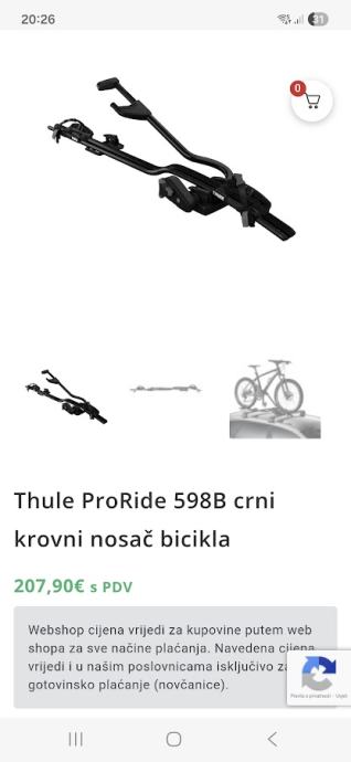 Prodajem Thule krovni nosač za bicikl, kao nov.