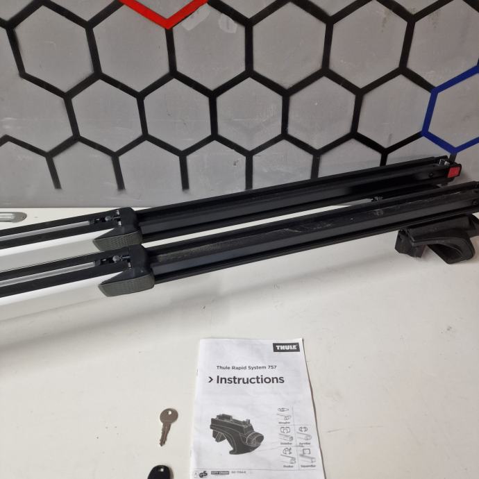Rabljeni krovni nosači THULE za vozila OPEL Omega Estate, od godine 1994 do 2003. Za vozila s podignutim uzdužnim krovnim nosačima.