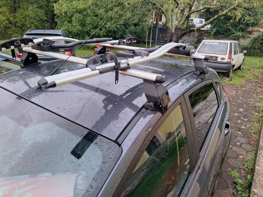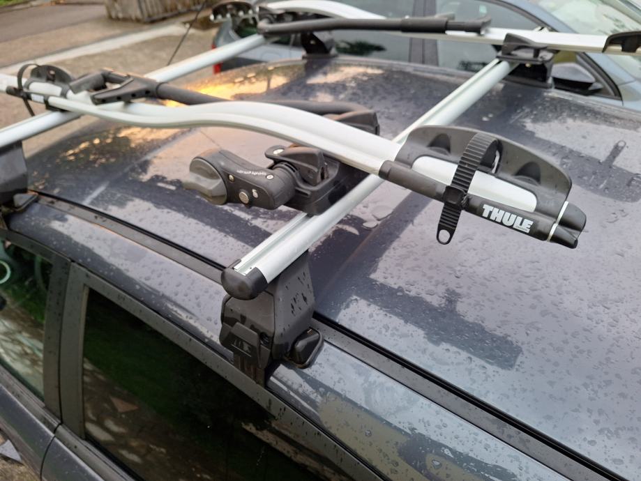 Thule 591, krovni nosaci za bicikl, 2 kom., drugi vlasnik, kod mene 3 god., upotrebljavani 10x na god.