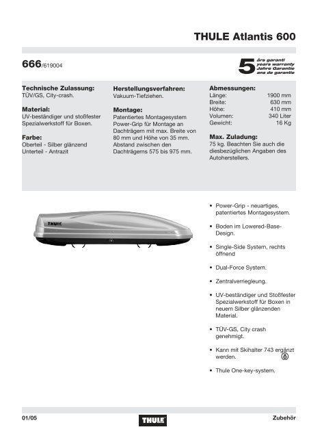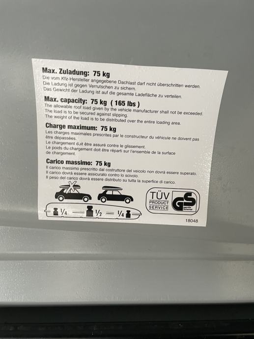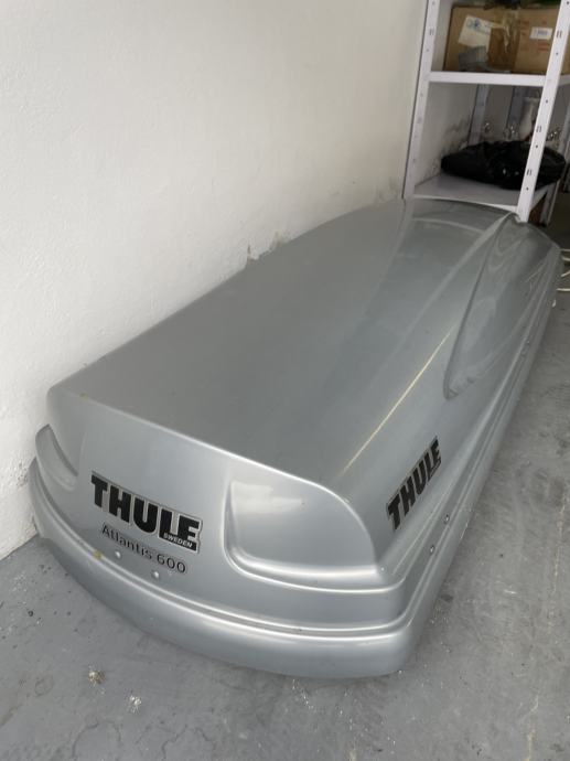 Krovna kutija THULE Atlantis 600, siva, zapremine 340 litara, dimenzije 1900 x 630 x 410 mm, ispravna, očuvana. Nosivost 75 kg, erodinamična, 2 ključa, zaključavanje u 3 točke, stem klješta za pričvršćenje za krovne nosače.