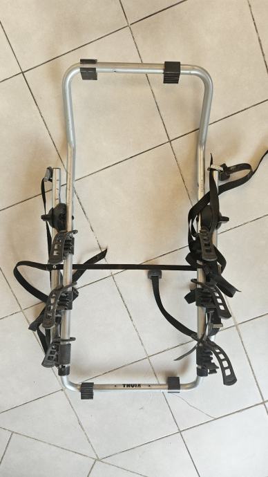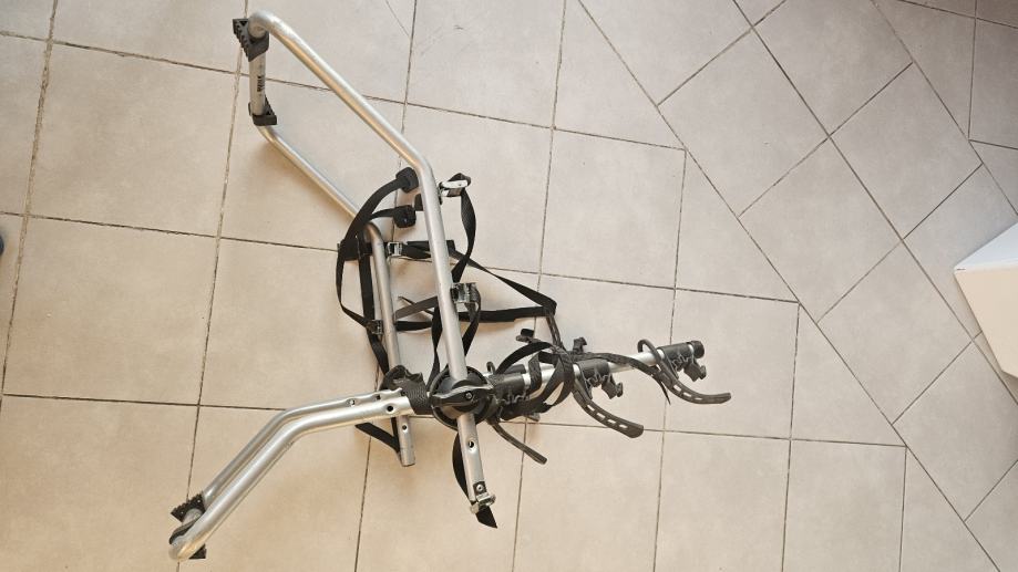 Nekorišteni nosač za tri bicikla za na stražnja vrata. U dobrom stanju. Srebrne boje.