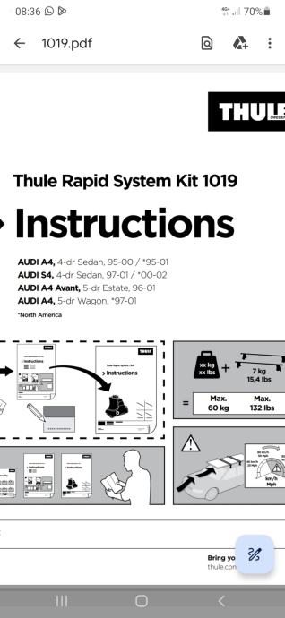 Prodajem Thule krovne nosače za Audi A4 od 95-01 (kit 1019)