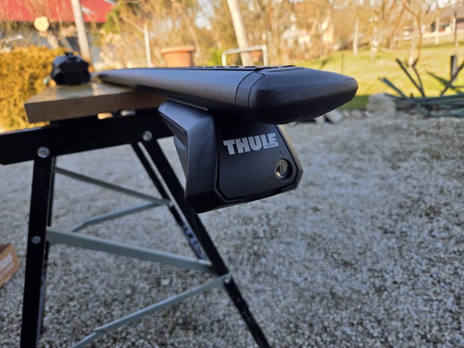 Thule krovni nosači za aute sa uzdignutim krovnim šinama.