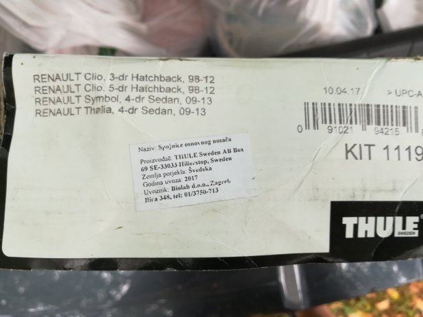 Prodajem Thule krovne nosače za Renault Clio i Thaliu ( kit 1119 ) u odličnom stanju.