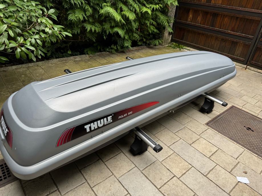 Thule krovni nosači za “glatke” ili s uzdužnim utorom krovove i kutija Polar 500. Odvojeno: kutija 220€, nosači 100€
