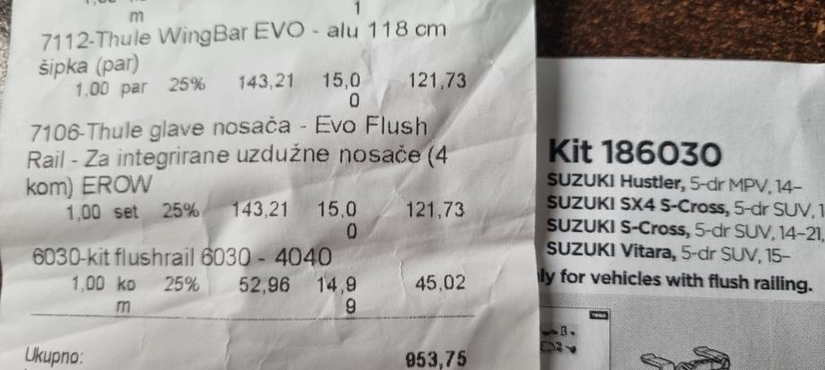 Prodajem krovne nosače za Suzuki vozila:
