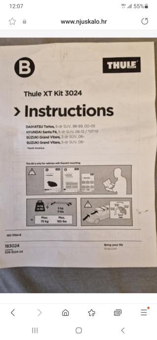 Prodajem Thule krovne nosače za (kit 3024)