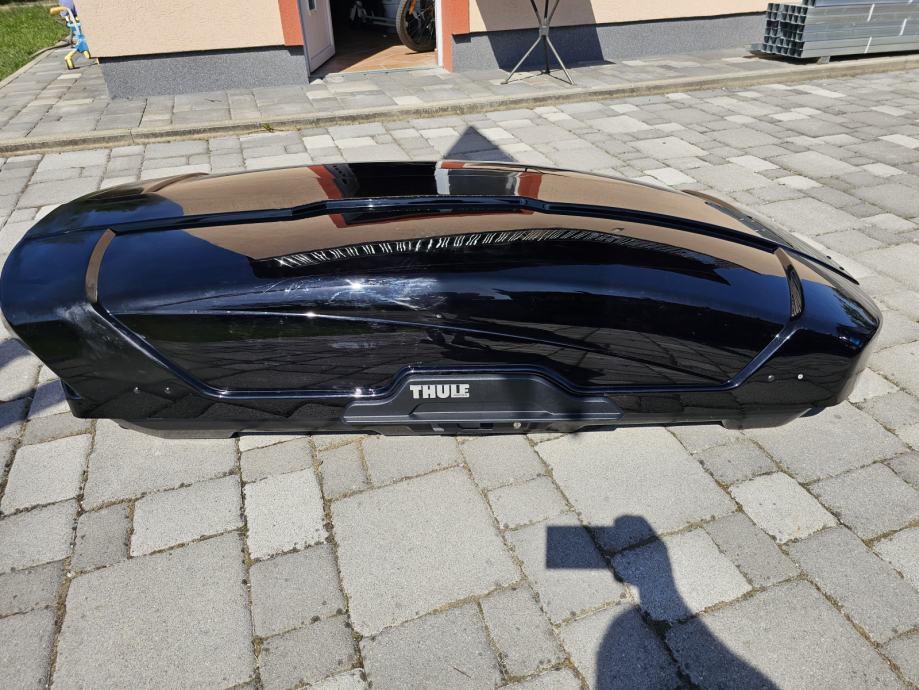 Krovna kutija Thule Motion XT XL Black Glosy, kapacitet 800 litara, jako malo upotrebljavana ( bila 3x na autu), u stražnjem dijelu popravljana kod ovlaštenog servisera Varoplast, potpuno ispravna, otvaranje na obje strane, Dizajnirana za odličnu prostornu učinkovitost. Unaprijed ugrađen sustav za brzu montažu Power-Click s ugrađenim pokazivačem okreta za brzo i sigurno postavljanje samo jednom rukom. Dvostrano otvaranje s vanjskim ručkama poklopca za praktično postavljanje, utovar i istovar. Središnji sustav zaključavanja omogućuje maksimalnu sigurnost Thule Comfort ključ – ključ ergonomskog prihvata, može se izvaditi samo ako su sva mjesta zaključavanja sigurno zaključana. Osmišljen da ima položaj prema naprijed na krovu vozila te je omogućen potpuni pristup prtljažniku, a da otvaranju stražnjih vrata ne smeta krovna kutija. Za brzine 160-180 km/h - provjereno i nakon popravka.