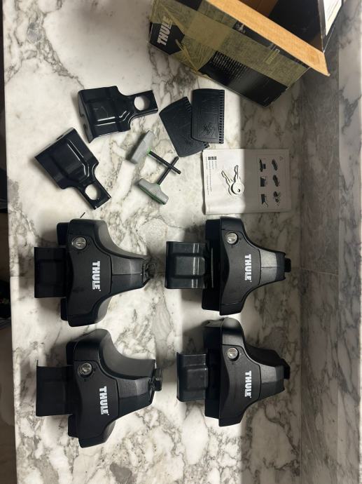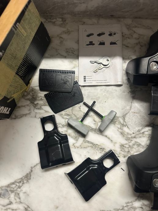 Komplet glave nosača za Thule poprečne šipke. Savršeno stanje sa kompletnim kitom: 2 ključa; 2 natezača; 2 plastična razdvojnika, uputstva.