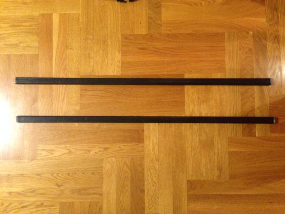 Tradicionalne kvadratne šipke za teret (120cm), izrađene od nehrđajućeg čelika s crnom plastičnom oblogom.