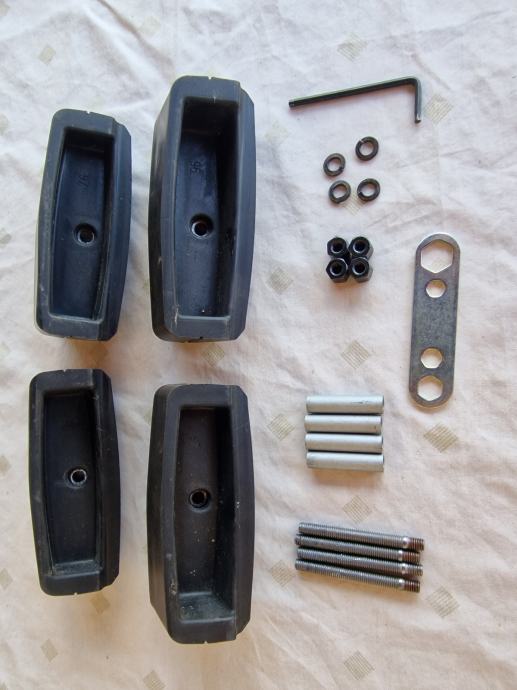 Komplet je iznimno očuvan, 2 godine skladišten na suhom i zatvorenom, montiran 3 puta a korišten za 4 putovanja (gore je bila montirana samo thule kutija).