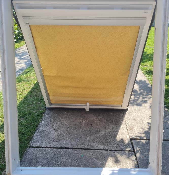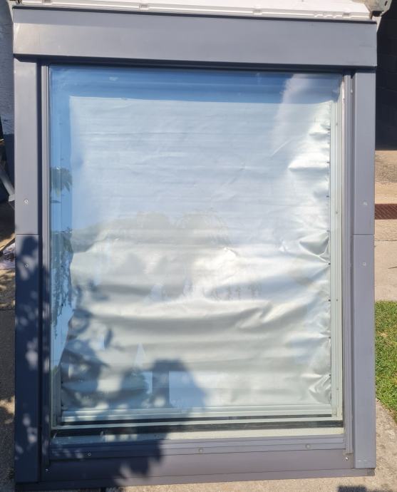 Prodajem Velux krovni PVC prozor 940x1180 mm sa sjenilom i troslojnim izo staklom, na kojem je jedino mehanizam za sjenilo pokvaren i trebalo bi ga servisirati.