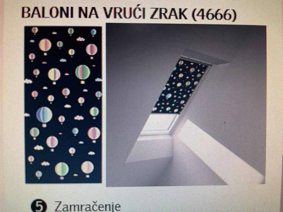 Prodajem novo rolo sjenilo za zamračenje za Velux krovni prozor boje Baloni sa bijelim vodilicama.