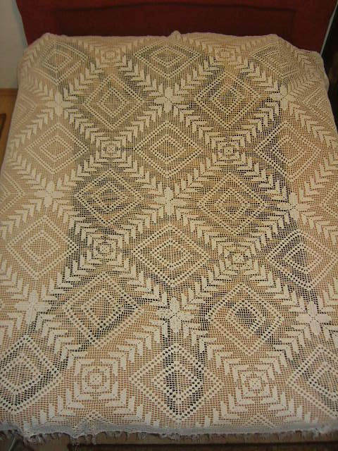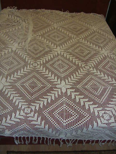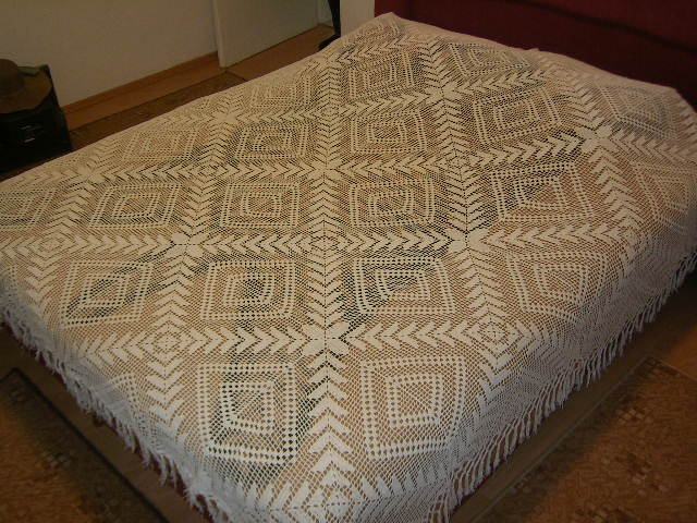 Dva heklana, kukičana prekrivača za veliki bračni krevet veličine cca 200cm X 220 - 240cm. Prekrivači imaju rese jedan sa dvije strane drugi sa tri.
