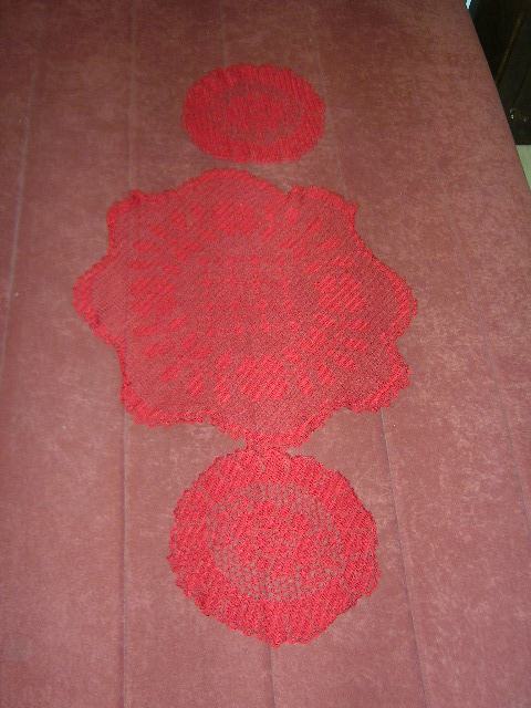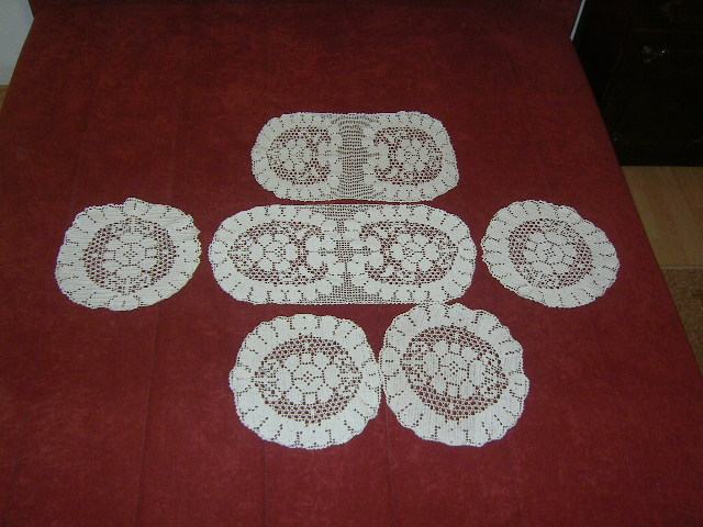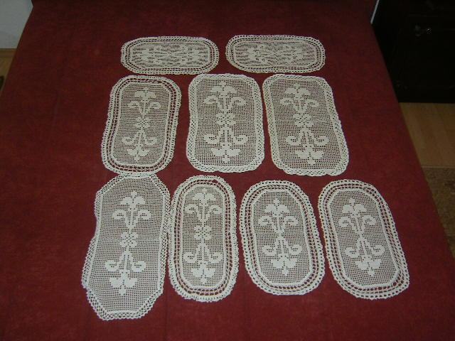 - slika 15 heklani milje za policu regala (dimenzije 100 X 6cm, ovalni mali stoljnjak dimenzija 67 X 37cm i mali ovalni milje dimenzija 48 X 22cm).