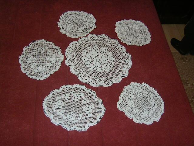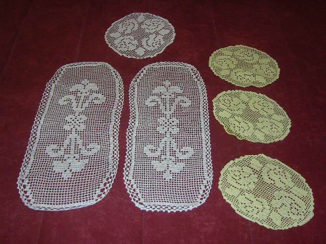 Heklani, kukičani ručni rad; tabletići, garniture, stolnjaci;