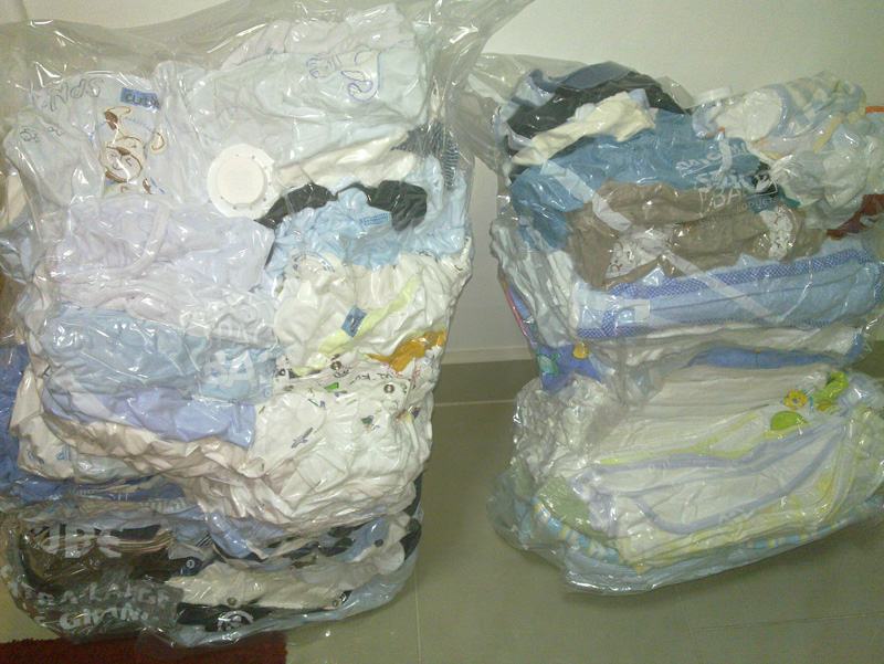 2 extra large bags prepune dječje robice, nakon vakumiranja težina 1 pakiranja teži 9,1 kg!!