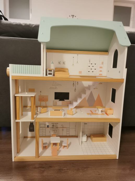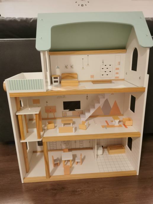 Kucica za lutke sa liftom i pripadajucim namjestajem, jako malo koristena