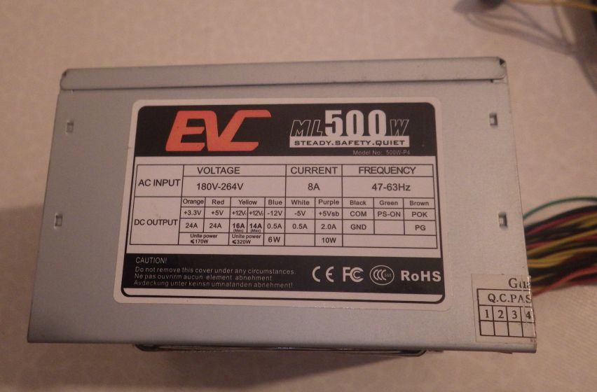 EVC PSU 500W, PC napajanje ATX 24Pin, EPS ATX 12V 8, 4 i 6 pin, 12cm ventilator, 4xSATA, 4x Molex, 1x FDD.