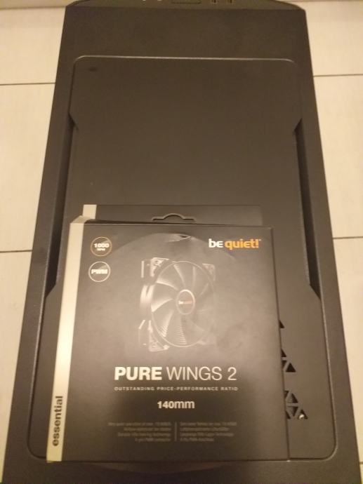 Dolazi sa četri Pure Wings 2 140mm ventilatora instalirano, plus još jedan u zasebnom pakiranju. Kutijica sa vijcima i vezicama se nalazi unutar kućišta u kavezu za diskove.