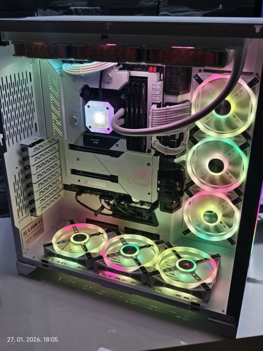 Case Lian LI O11 Dynamic Rog XL full tower Hot Swap disc, 6x 120mm corsair Ml ventova i icue kontrolerom, stanje 10/10 kao novo, zaštitna folija skinuta prije 2tj.