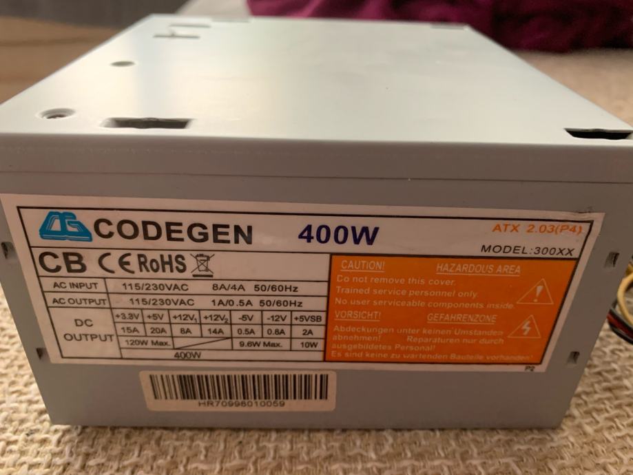 Prodajem Codegen 400W ATX napajanje. Rabljeno.