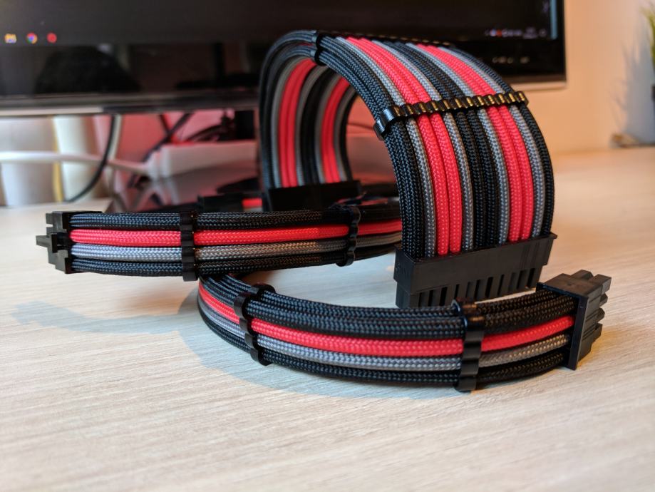Prodajem set custom sleeved ekstenzija. Pase na sva napajanja. Set se sastoji od 24 pin kabla za maticnu , 8pin cpu kabla i 8pin kabel za grafičku karticu. Kablovi su vrlo kvalitetni , dolaze sa cablecomb vodilicama i nemaju nikakvih oštećenja. Cijena fiksna.