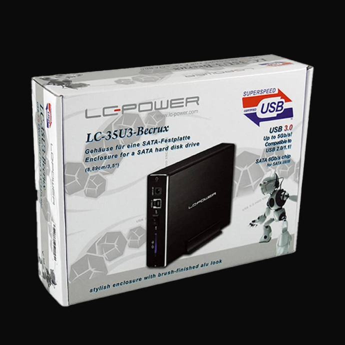 High-quality external enclosure for 8.89cm/3.5″ SATA hard disks with aluminum body for excellent heat dissipation. Stylish, modern design and USB 3.0 connection for maximum data transfer speeds.
