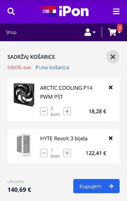 Cijena za kućište je 70€, sa dva ventilatora je 80€.