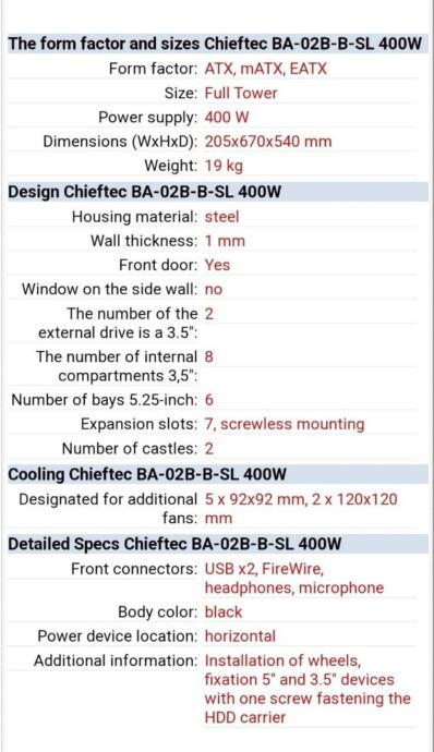 Prodajem Kućište Chieftec big tower, bez oštećenja. Moguća dostava u Osijek i okolicu i Zagreb (po dogovoru). Specifikacije su na zadnjoj fotografiji.