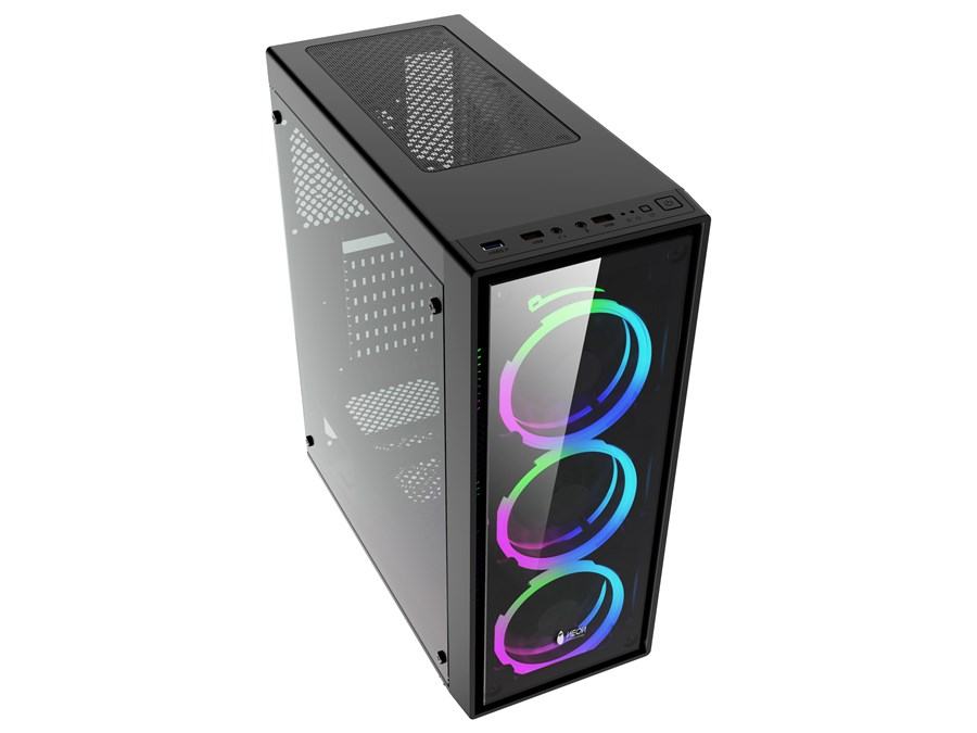 Kućište NEON Daedalus, TG prednja stranica, prozirna bočna stranica, 2x USB 2.0, 1x USB 3.0, 3x 12cm rainbow LED (naprijed)