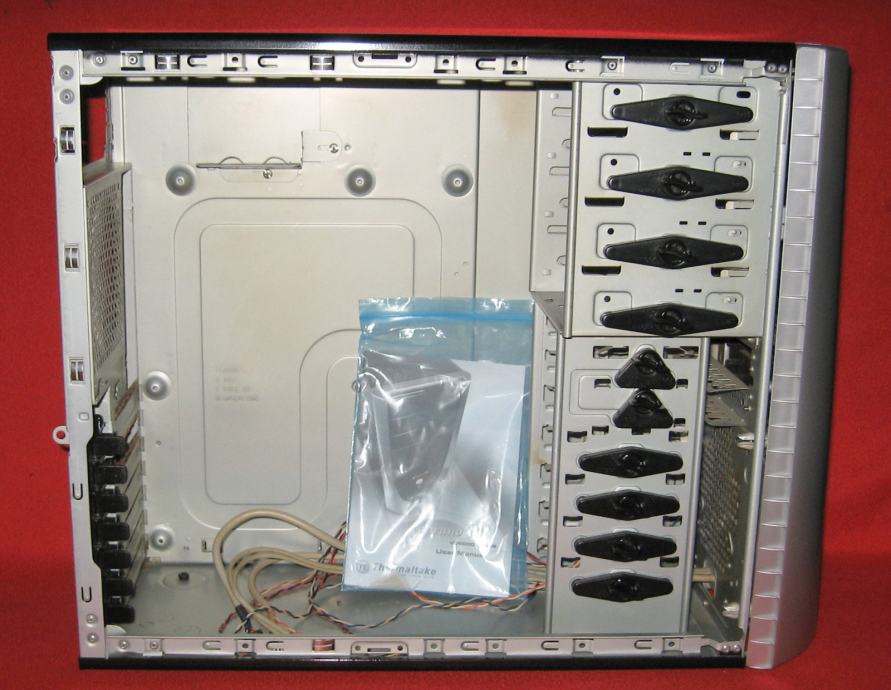 Thermaltake VD6000BNS mid tower Soprano VX, bez PS, crno, materijal izrade: čelik, USB 2.0×2, Fire wire, HD audio,, zračni tunel na bočnoj stranici za poboljšano hlađenje CPU-a , instalacija svih uređaja bez alata, nožice, bravica sa ključevima na bočnoj stranici, 4×5,25", 6×3,5", 415×190×510mm (vך×d)