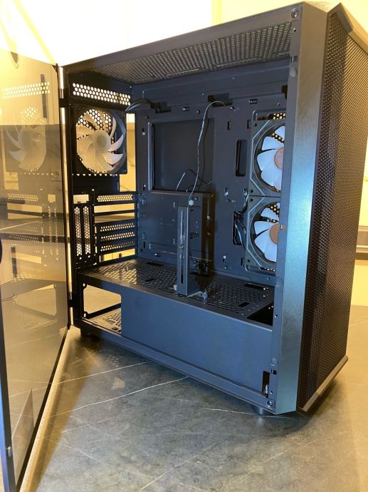 Kućište ima izvrstan airflow,prednje staklo je kaljeno i otvara se na sistem vrata,nema šarafanja,uzme se za kukicu i otvori.