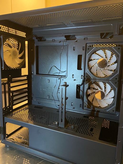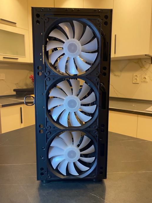 - LED tipka za mjenjane RGB u kućištu,svi ventilatori idu na jedan modul i iz tog modula ima jedan kabal koji se samo ušteka na matičnu da dobije struje,netilatori svijetle i okreću se