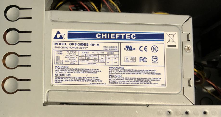 U kučištu je ispravno Chieftec napajanje GPS-350EB-101 A (ispravno)