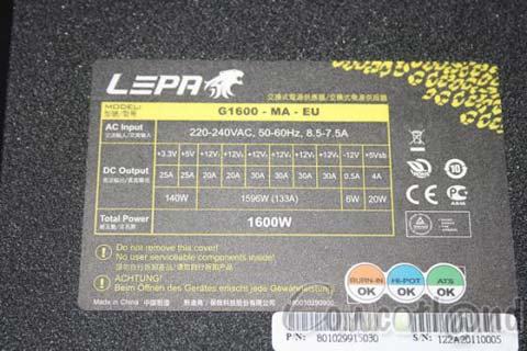 Prava snaga: 1,6 kW, odnosno 1,7 kW izlazne snage u Peak-u. 80 Plus Gold certifikat, negdje se čak efikasnost približava i Platinum razini.